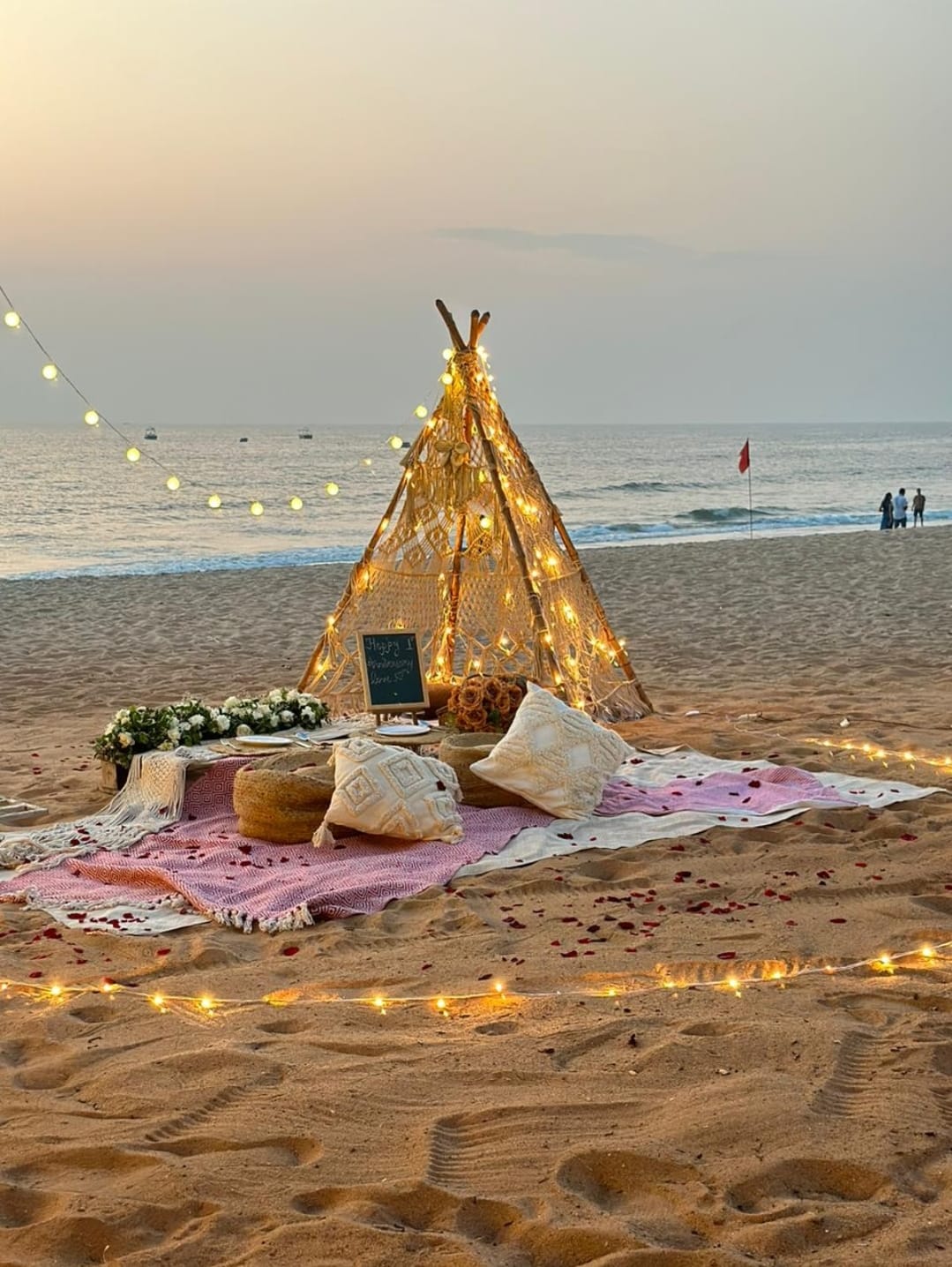 1) Bohemian tent setup with fairy lighting